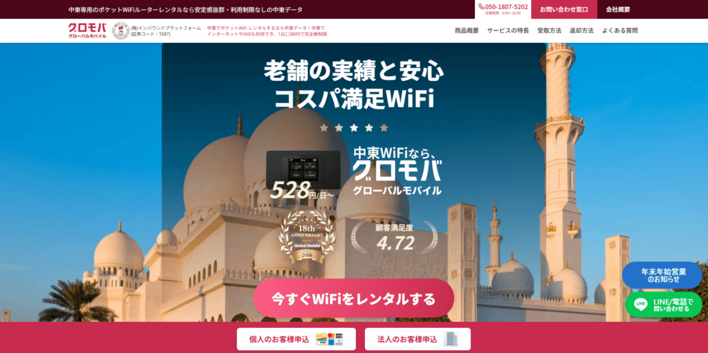 ドバイ旅行でWiFiレンタルをお探しの方に向けて、まずは結論から主要6社の比較表をご紹介していきます。グローバルWiFiイモトのWiFiなど、大手サービスから格安サービスまで幅広く比較しましたので、ご自身の旅行スタイルに合わせて選んでみてください。